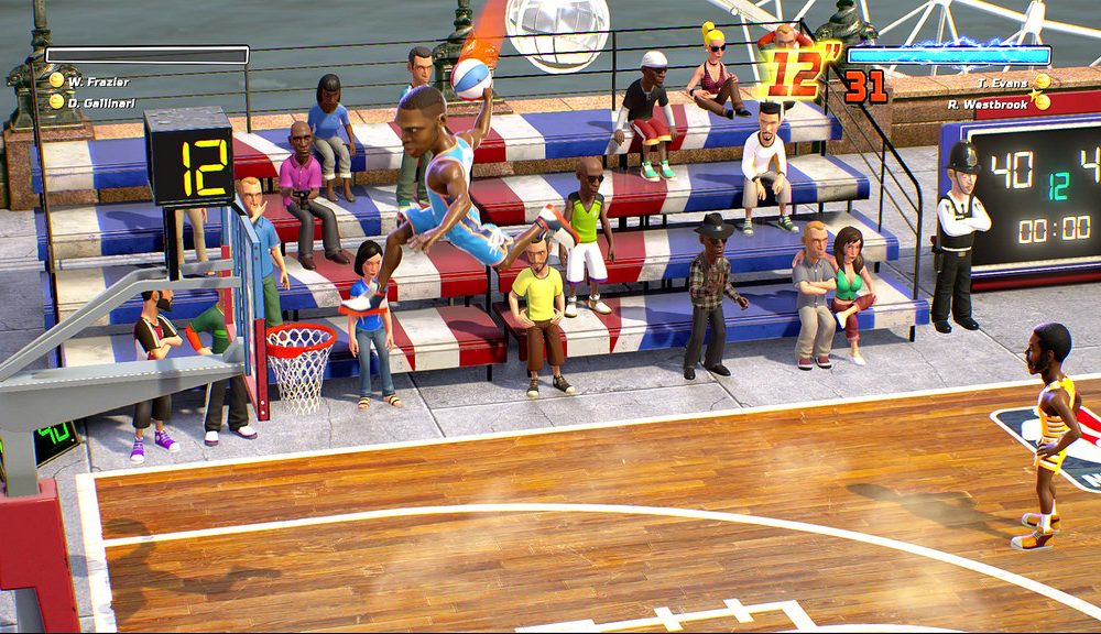 The most interesting thing being brought to the table by NBA Playgrounds is the Lottery System. By making good plays your team will gain lottery bar momentum. Once it’s filled you get to spin a wheel for a short term, bonus powerup. For example: increased speed, extra jump height, increase shot percentage, and double the amount of points a 3-pointer is worth.